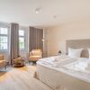 Das zweite Schlafzimmer mit Doppelbett, TV und Bad en Suite (Dusche, WC) ist ebenerdig und vom Foyer begehbar. Über eine Treppe gelangen Sie in den oberen Bereich der Suite, wo zwei weitere Schlafzimmer mit jeweils Doppelbett sowie ein Gäste-WC auf Sie warten. Beide Schlafzimmer sind mit einem Boxspringbett und TV ausgestattet. Der Clou sind die Cabriofenster, die sich im Handumdrehen in einen Balkon umwandeln lassen. Das Badezimmer befindet sich für unsere Gäste des oberen Bereiches auf der Ergeschossebene und ist mit Dusche und WC ausgestattet.