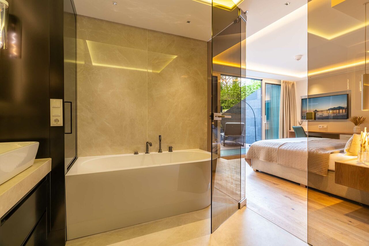Kein Detail wirkt zufällig: Von der ersten Planung bis zur finalen Ausstattung wurden nahezu alle Möbel und Einbauten von einem regionalen Planungsbüro entworfen und in einer Tischlerei gefertigt. Edle Materialien, klare Linien und viel Liebe zum Detail verleihen dem Appartement seine unverwechselbare Handschrift.